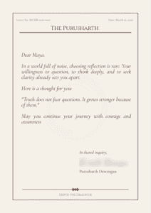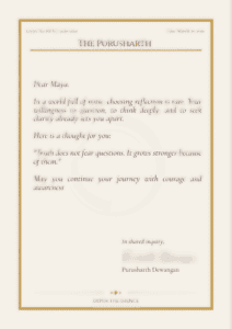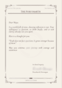A digitally signed, personalized intellectual letter crafted for individuals seeking deeper clarity and disciplined inquiry.